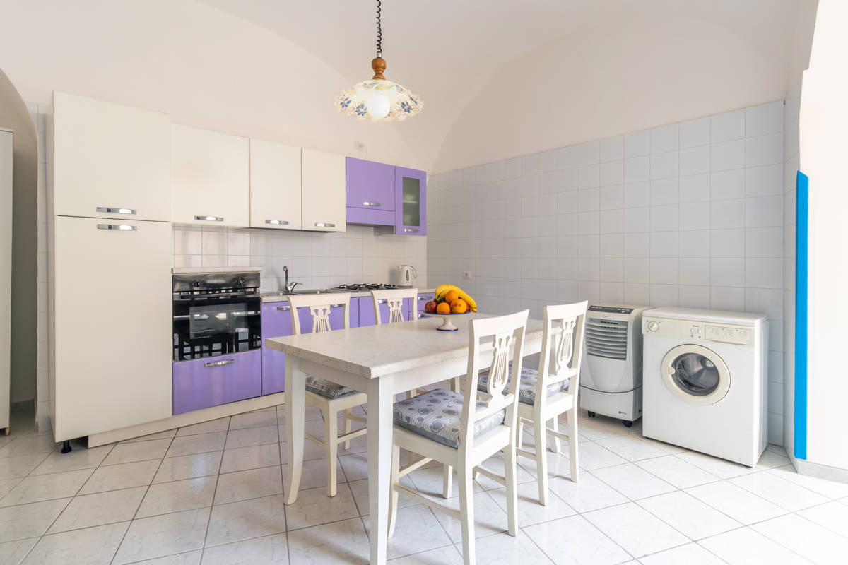 The kitchen, fully equipped with a refrigerator, freezer, toaster, oven, and kettle, is spacious and bright. It also features a sofa bed and opens onto a lovely courtyard furnished with a table, chairs, and an outdoor shower. This internal courtyard allows you to enjoy a moment of relaxation outdoors or an evening meal.