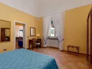 As you ascend your private stairway, you will see your own patio table and chairs where you can relax with a cup of coffee in the morning. As you open the door to "La Rotonda", which is named for one of the three famous Li Galli islands, you enter into the vacation condominium's open and spacious living room, comfortably furnished with a sofa bed, which sleeps two people, TV, and coffee table. Adjoined to the living room is the fully equipped kitchen, complete with four-burner stove and oven, refrigerator/freezer and freezer, and dining table for four people. Off the kitchen is the terrace, where you can enjoy your meal on the patio set, while taking in the amazing panoramic Li Galli islands and sea view.